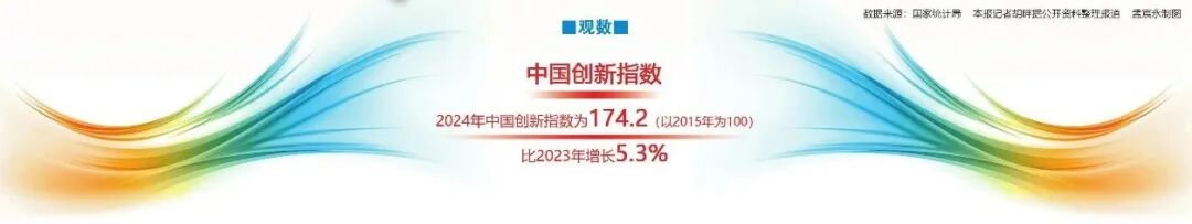 编者按国家统计局近日发布2024年中国创新指数结果显示,2024年中国创新指数为174.2(以2015年为100),比2023年增长5.3%,保持稳步增长态势。这一走势表明,我国创新环境持续改善,创新投入继续增加,创新产出较快增长,创新成效稳步提升,科技强国根基不断夯实,为高质量发展提供坚实支撑。